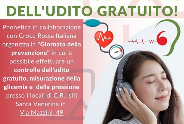 SANTA VENERINA - Parte l'iniziativa "Phonetica", a cura del Comitato Croce Rossa di Acireale. Venerdì 16 giugno dalle 9.30 alle 12.30, presso i locali di Via Mazzini a Santa Venerina, i volontari effettueranno controlli gratuiti dell'udito, della glicemia e della pressione.