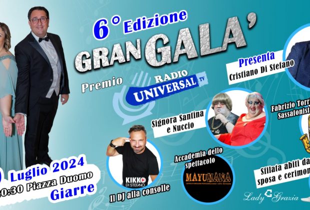 Il patron e direttore artistico, l'editore Isidoro Raciti, con la presenza del Sindaco di Giarre il Dott. Leo Cantarella, dell'assessore allo Spettacolo Dott. Giuseppe Cavallaro, illustrerà la sesta edizione del Gran Galà Premio Radio Universal TV, alla presenza del presentatore Cristiano Di Stefano e di tutti i protagonisti dell'evento.