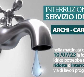 RIPOSTO - Martedì 11 luglio 2023, dalle ore 9:00 alle ore 16:00, potrebbe verificarsi una riduzione o interruzione della fornitura idrica a Riposto a causa della momentanea mancanza di energia elettrica prevista e comunicata dall'Ente, per poter svolgere lavori sulla rete elettrica.