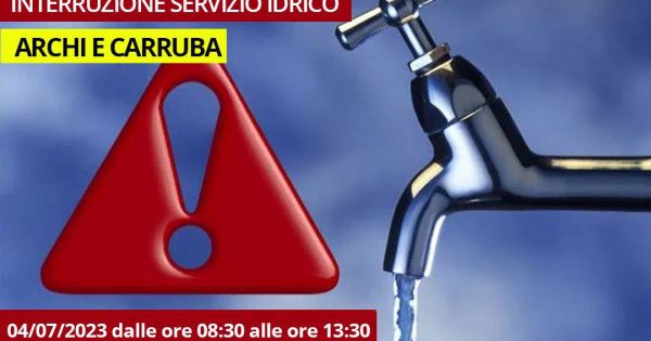 RIPOSTO - Il Comune di Riposto comunica che giorno 04/07/2023, dalle ore 08.30 alle ore 13.30, circa la fornitura di acqua potrebbe essere ridotta o interrotta per via di lavori programmati alla rete idrica, nel territorio di Archi e Carruba. -