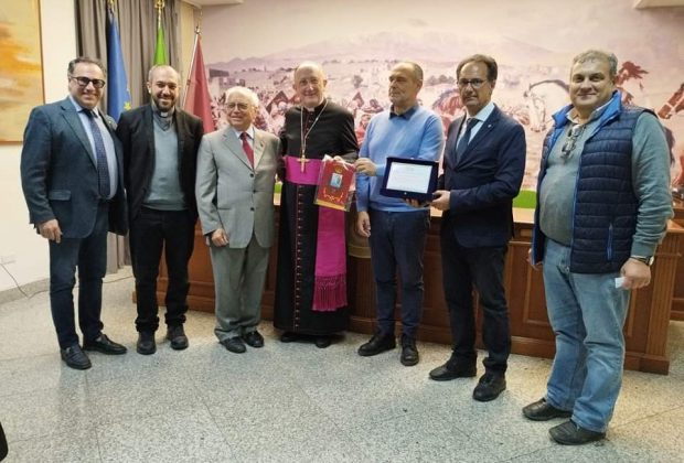 ACIREALE - Riconoscimento da parte dell’Unione Cattolica della Stampa Italiana, consegnato al Palazzo di Città in presenza del sindaco, ing. Stefano Alì a Mons. Giuseppe ... -